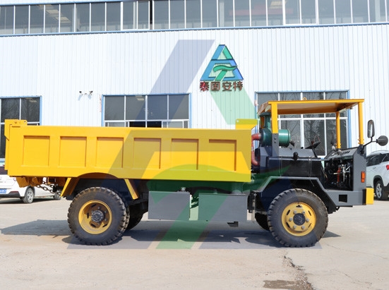 本车型是为适应以平巷为主,巷道窄,高度较矮的矿井设计的,整体车架,前后桥驱动,前轮转向。选用带副档变速箱,配玉柴4102发动机;变速幅度大,抵挡大扭矩大牵引力,速度高节省时间。加装水过滤有效降低排放。 采用气助力离合装置,轻松有效可靠;液压助力转向装置,操轻松灵便;双油缸自卸装置,平稳高寿命;井下运矿车专用板簧,耐用可靠。